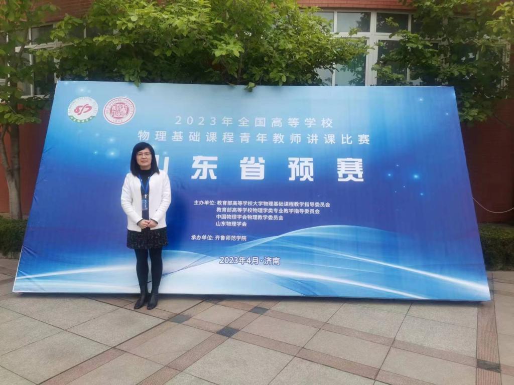 2023年全国高等学校物理基础课程青年教师讲课比赛山东省预赛于4月22日在齐鲁师范学院举行,来自全省15所高校的21位青年教师参加了比赛。我院教师华娟代表学校参加比赛并荣获特等奖。